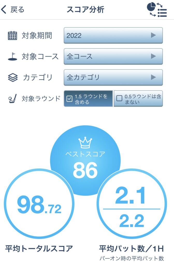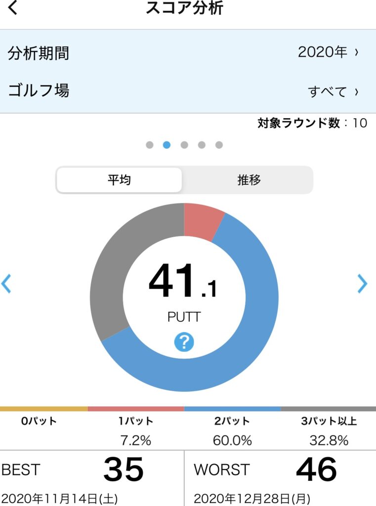 年間のパット数が1年未満で40パット付近になったよ😆